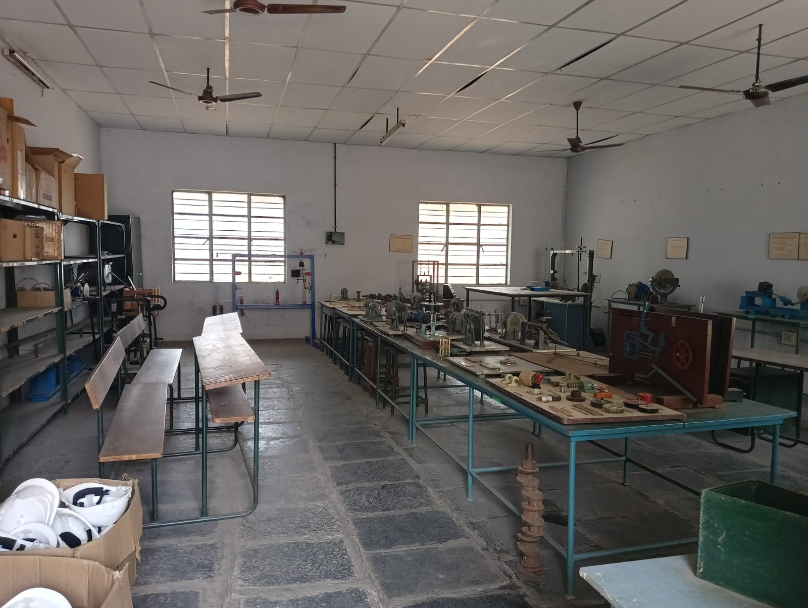 This laboratory contains equipment's both in the form of working and non-working models through which the students are able to synergies theory and practical skills. This lab describes the physical concepts that govern the behaviour of machines. It comprises the study of relative motions between parts of the machines and the forces that act on these parts due to constrained motion. It helps in the understanding of various forms of kinematics chain and their inversions through physical model setups. The moving parts of all machines inherently produce vibration and noise. Hence the system is required to be designed in a manner so as to anticipate a vibration problem and minimize its undesirable effects.